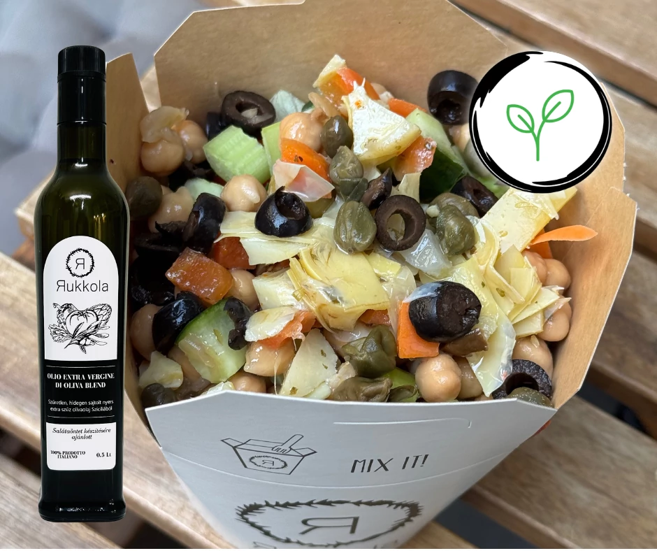• Az egészséges összetevők mint saláta és káposztakeverék gabonával, a paradicsom, uborka, zeller, sárgarépa, csicseriborsó, olíva bogyó, csilis olíva olaj ötvöződnek a borecetes articsóka és kapribogyó aromájával, amelyek segítenek a mindennapi megszokott étel helyett egy különlegesebb mediterrán ízélményt adni.
